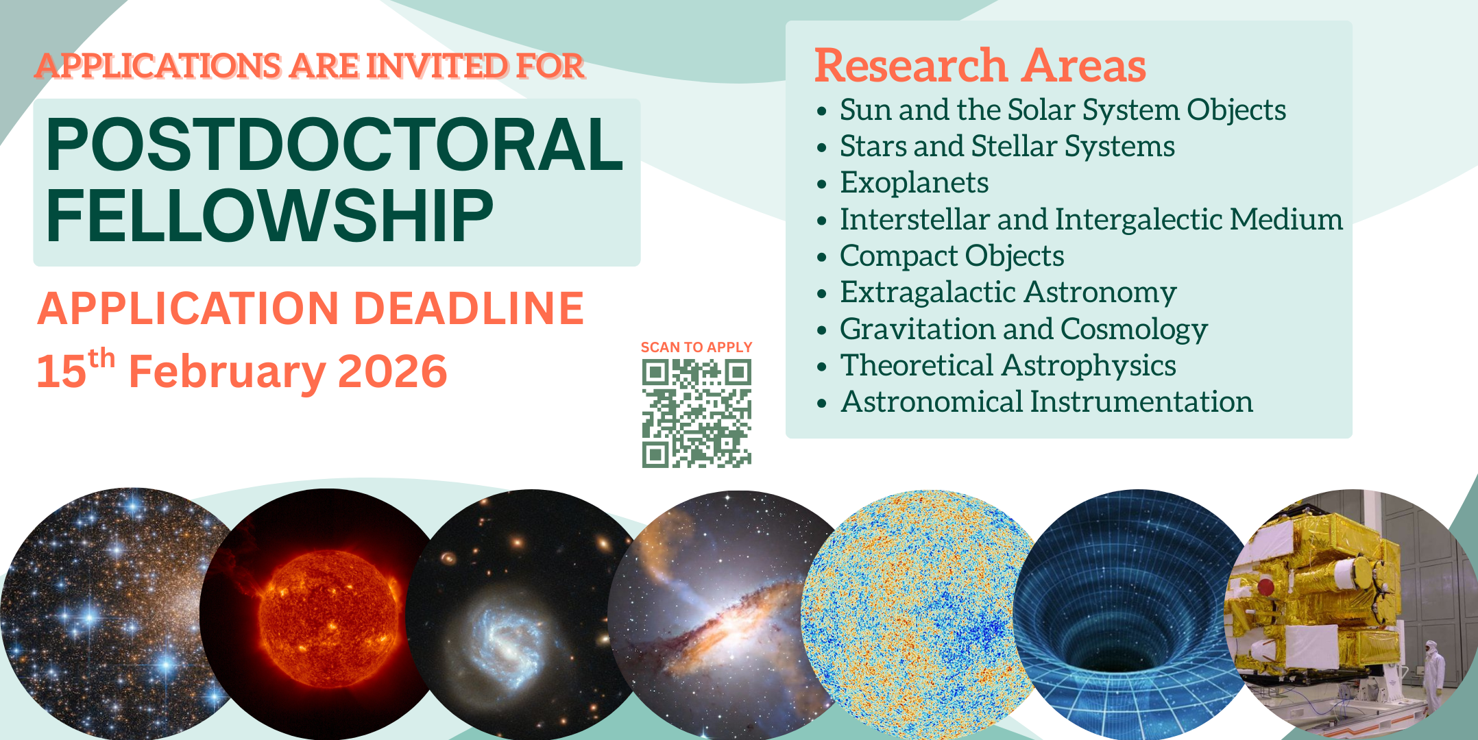 | Job Title: Postdoctoral Fellowship Positions at IIA, Bangalore Job Category(s) : Post-doctoral fellow Job Description : The Indian Institute of Astrophysics, Bangalore, invites applications from highly motivated researchers for its Postdoctoral Fellowship Programme. More details can be found at IIA website Application deadline : 2026-02-15 Institutional URL with the announcement : https://www.iiap.res.in/opportunities/pdf/ Announcement Brochure/Poster/Notification : pdfadvertisement_1.png Name of the Contact Person : PDF Committee Affiliation of the Contact Person : N/A Email of the Contact Person : pdf@iiap.res.in Other Remarks : N/A |