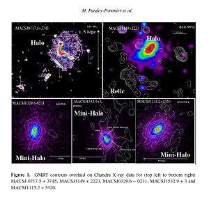 Larger scale structures in the Universe are formed by massive Galaxy clusters that grow via mergers of smaller clusters and galaxy groups. Multiple frequency radio emissions arising from such massive clusters were investigated in this work, in order to study the nature of low frequency non-thermal emission that are generated within their ongoing merger events. To probe further, the non-thermal and thermal components of the intra cluster medium and their interaction during cluster collisions, Chandra X-ray data was used. GMRT data presented on 5 massive clusters in this paper reveals the presence of diffuse radio structures in the form of halos, relics and mini-halos in these systems. Furthermore, we discuss the statistical properties of radio power at 1.4 GHz and X-ray luminosity in galaxy clusters and highlight the importance of contribution from LOFAR and SKA in this field.
